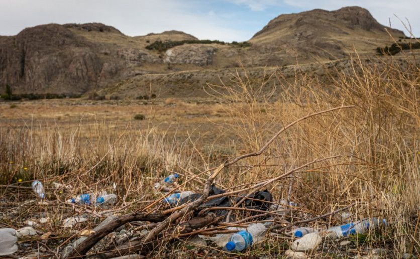 Envases vacíos de botellas de agua mineral en las cercanías al Centro de Acopio y Redistribución de Residuos Inorgánicos de la Municipalidad de El Chaltén, al lado del pico Río Fitz Roy, en marzo de 2022. En 2021, la municipalidad de El Chaltén adhirió a los Objetivos de Desarrollo Sustentable de la Agenda 2030. Uno de esos objetivos se refiere a la disponibilidad de agua y su gestión sostenible. NATALÍ ORMAZÁBAL