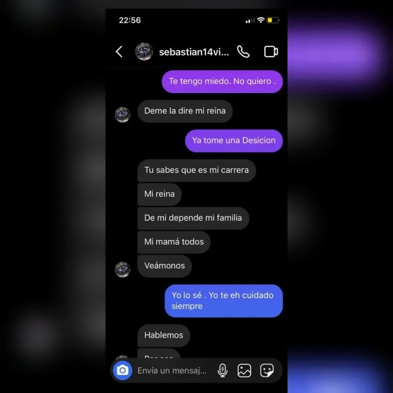 La conversación de Instagram fue presentada por la víctima junto a su abogado, Roberto Castillo, en los tribunales de Lomas de Zamora. En ella se observa cómo el jugador le solicita que no "haga nada raro".