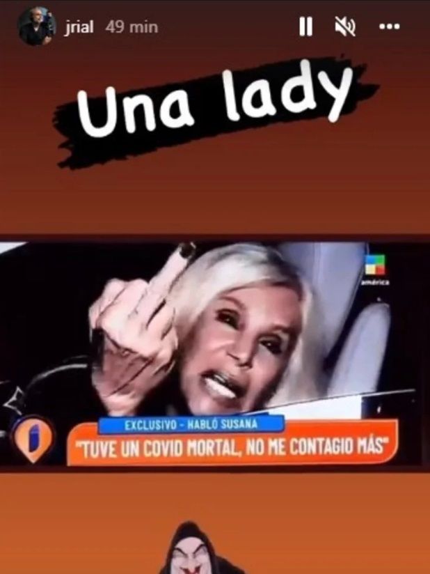 En su cuenta de Instagram, Rial subió el fragmento con el exabrupto de Susana y junto a un emoji de bruja, señaló: "Una lady (dama)".