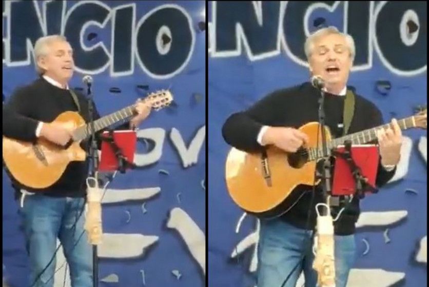 En un acto del Movimiento Evita por el 25 de Mayo, el presidente Alberto Fernández se subió al escenario para tocar la guitarra e interpretar la canción "Solo se trata de vivir" de Lito Nebbia.