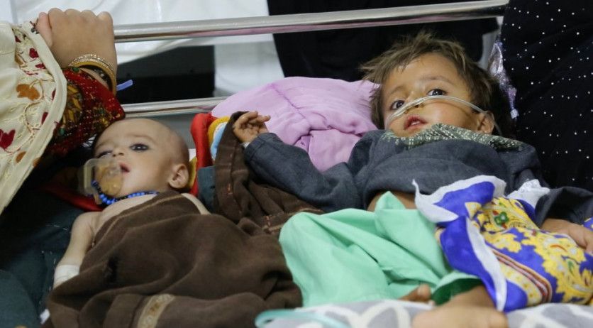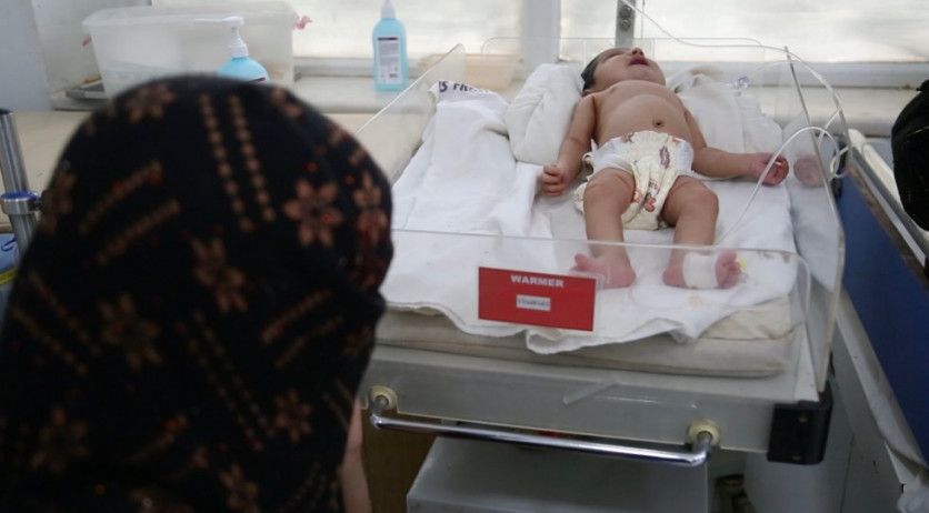 Los hermanos Ebad y Abdullah, nacieron mellizos pero tienen distinto tamaño. Su madre, Yasana, llevaba días sin alimentarse.