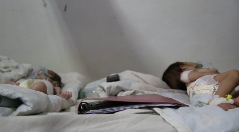 Los niños respiran a duras penas con mascarillas de oxígeno. Se recuperan en las llamadas "camas de resurrección". ÁNGEL SASTRE