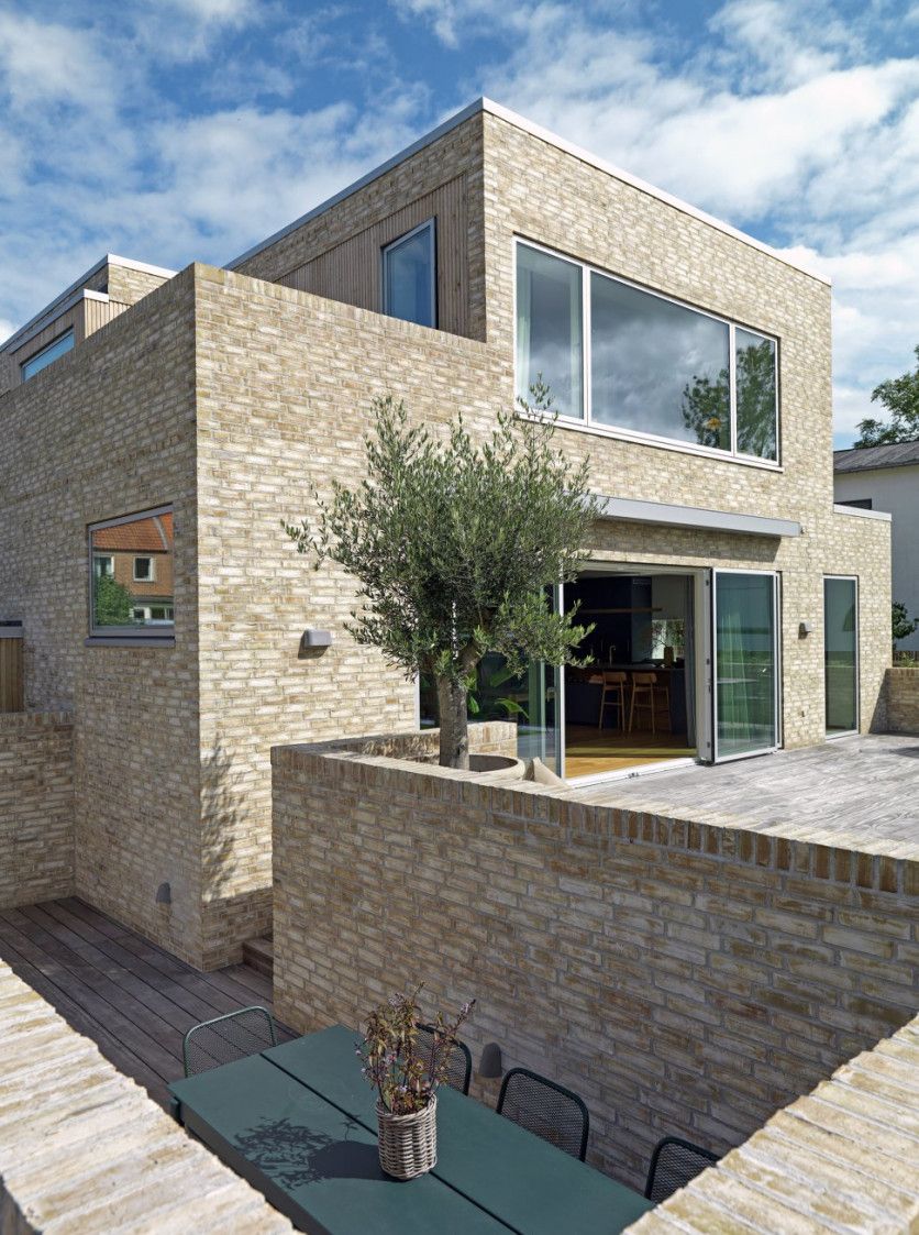 Levantada con ladrillo amarillo, que gana con el paso del tiempo, esta vivienda nueva está ubicada en un vecindario de los años sesenta al oeste de Copenhague. Una elección que conecta la casa con la historia de su entorno.