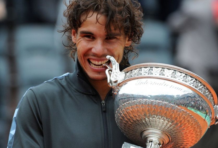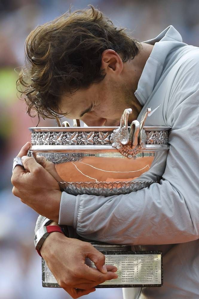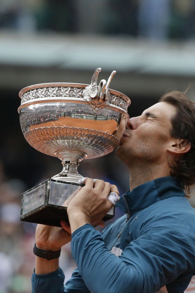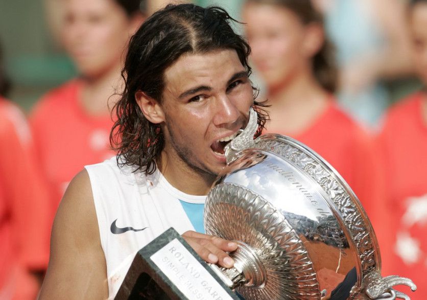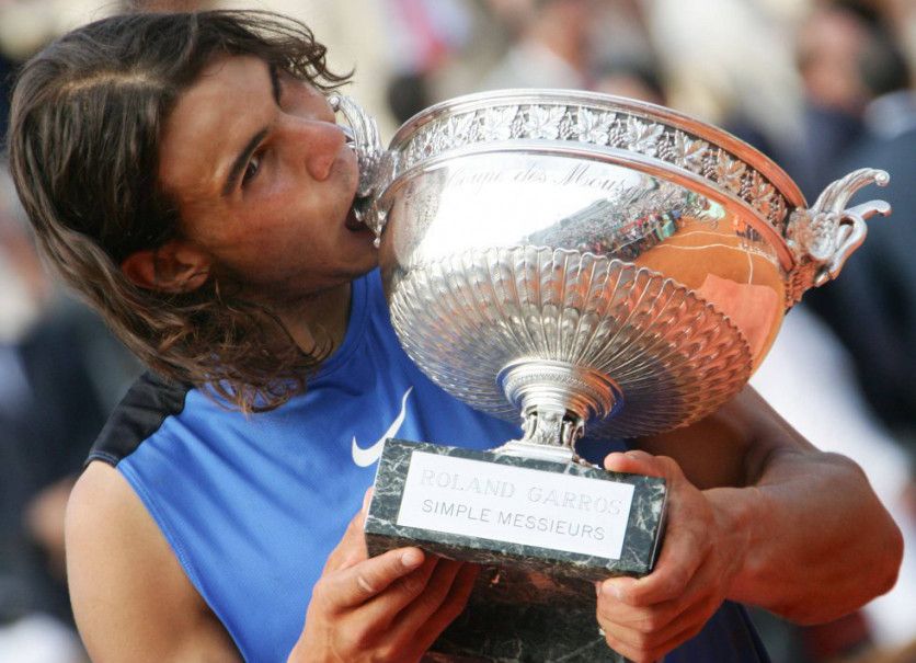 Roland Garros 2005 Rafael Nadal besa el trofeo que lo acredita como vencedor del torneo Roland Garros 2005 de tenis, tras derrotar al argentino Mariano Puerta por 6-7, 6-3, 6-1, 7-5. LIONEL CIRONNEAU AP