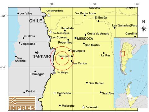El sismo tuvo una profundidad de 130 kilómetros y su epicentro fue en Tunuyán, y se percibió en las localidades de San Carlos y Tupungato, precisó el Instituto.