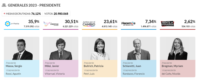 Este domingo se realizaron las Elecciones 2023 en Argentina para definir al próximo presidente de la Nación.