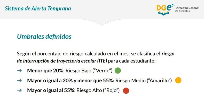 “No quiere decir necesariamente que van a abandonar la escuela pero según los patrones que utiliza la inteligencia artificial del SAT, determina que este grupo de alumnos/as tiene más posibilidades de dejar los estudios y es ahí donde hay que apuntar. Para eso, enviaremos los informes a los directivos y ya pusimos a disposición los recursos que podrán aplicar para trabajar en revertir la información. Por ejemplo, el Mendoza Educa destinará 500 millones de pesos. Vamos a poner el foco en estas instituciones”, explicó Thomas.