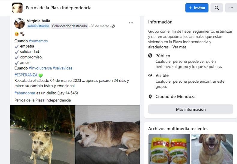 Virginia explicó que el grupo nació en Facebook, allá por el 2012 y que sigue vigente hasta hoy. “Todo arrancó gracias a unas chicas que trabajaban y/o estudiaban en la Ciudad de Mendoza. Apareció una perrita en muy mal estado en la zona de la plaza, la rescataron y la llevaron a un lugar de tránsito. El tema es que se escapaba y volvía siempre a la plaza. Entonces, las chicas comenzaron a pensar cómo podían monitorearla cada vez que se iba para que nos avisen. Ahí fue cuando formaron el grupo en esta red social y se fueron sumando comerciantes, artesanos, vecinos/as de la zona, y en estos años ha crecido mucho. Yo también me uní en ese año. Volviendo a la perrita con la que comenzó todo, fue dada en adopción”, comenzó a contar.