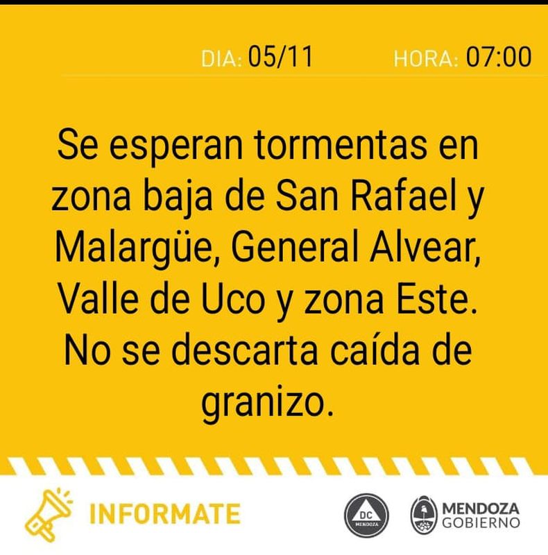 Según el pronóstico de la Dirección de Contingencias Climáticas para este miércoles 5 de noviembre en la provincia de Mendoza se aguarda un tiempo con una jornada mayormente nublada con descenso de la temperatura y precipitaciones. Los vientos serán moderados del sector sur. Instable en cordillera.
