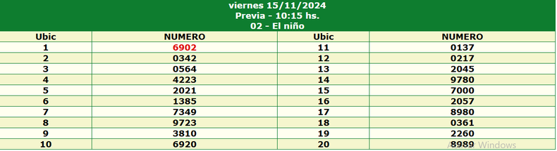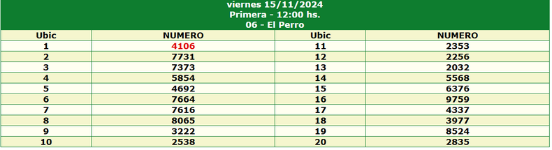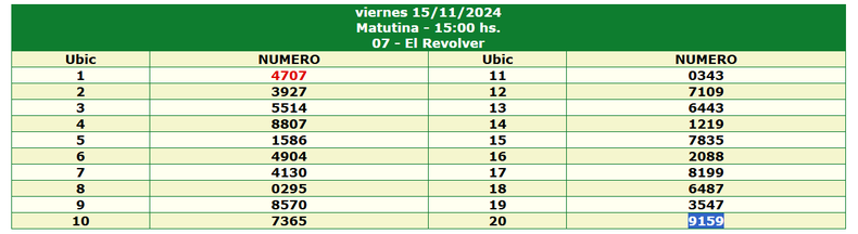 Resultados de La Nocturna (15/11) - Sorteo Nº 15118